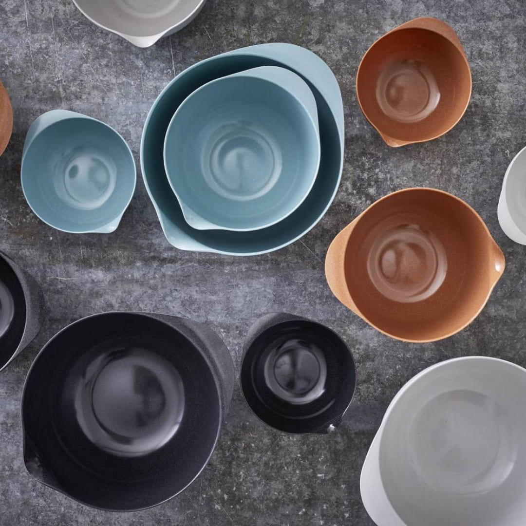 El bowl de la línea Margrethe de 750ml tiene en su base un anillo antideslizante que mantiene el recipiente firme mientras mezclás o batís. Es perfecto para trabajar con cantidades medianas de harina o crema. Además, tiene un asa en un lado, un pico vertedor y tapa.