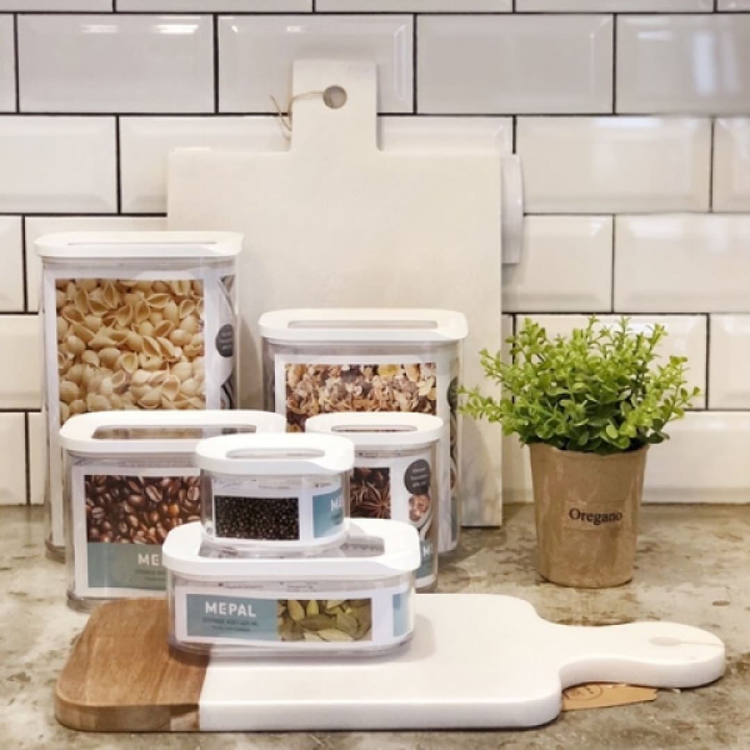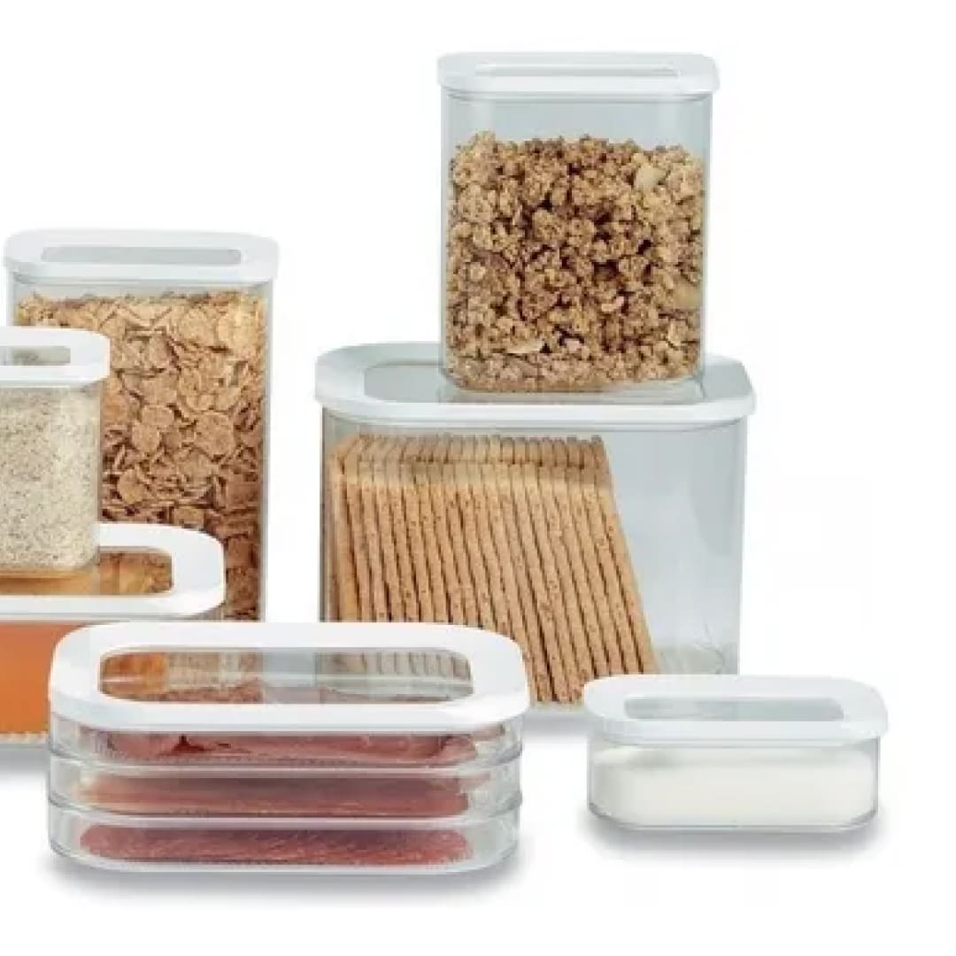 La caja de almacenamiento tiene una tapa transparente con un anillo blanco que te permite ver su contenido al instante, incluso en el cajón de tu cocina. El anillo blanco proporciona un ajuste perfecto para conservar alimentos secos como pasta, harina, galletitas o sobres de sopa.