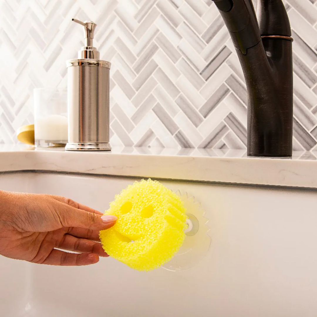Sus dos ventosas se adhieren a la mayoría de las superficies lisas. Tiene capacidad para una esponja Scrub Daddy o Scrub Mommy (no incluidas) y ofrece una solución práctica e higiénica para el día a día.