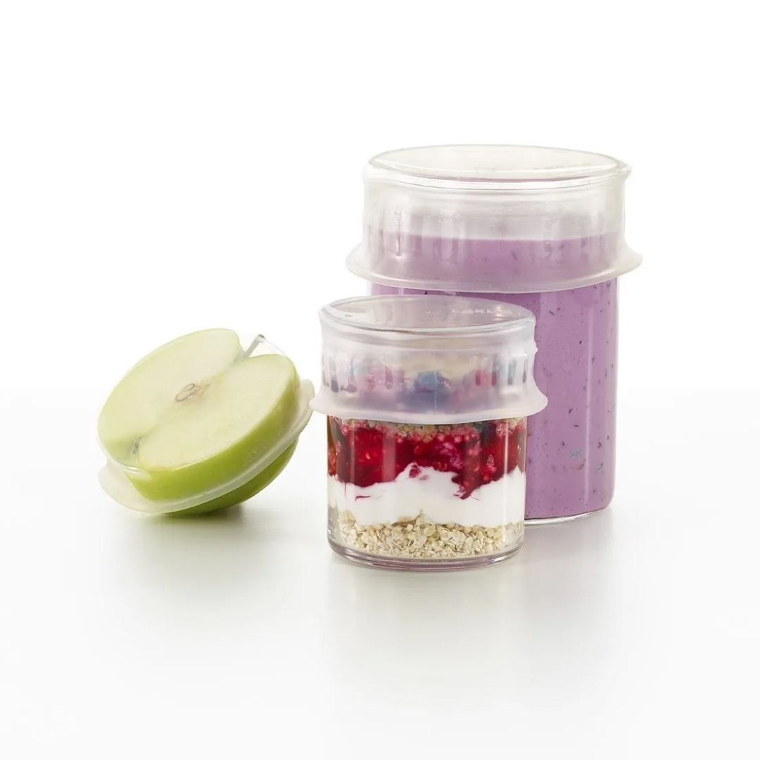 Se ajustan cómodamente a cualquier contenedor de diferentes diámetros. Son perfectas para guardar recipientes, latas e incluso mitades de fruta o verdura. Al presionar en el centro de la tapa se genera vacío y sellado hermético