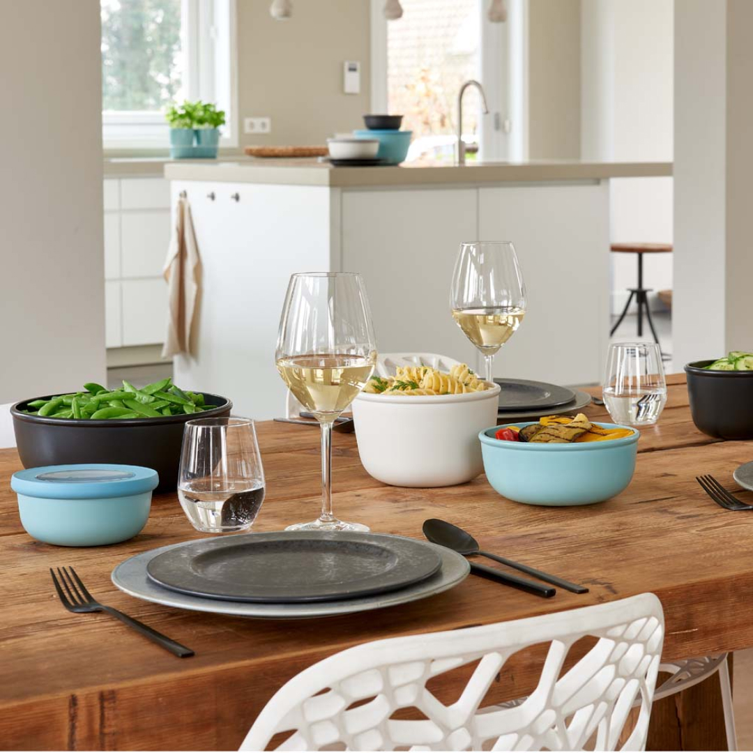 La colección Cirqula ha sido diseñada específicamente para un ‘círculo de uso’ completo. Estos bowl se pueden guardar en el freezer o en la heladera, calentar en el microondas (sin tapa) y después llevarlos a la mesa.