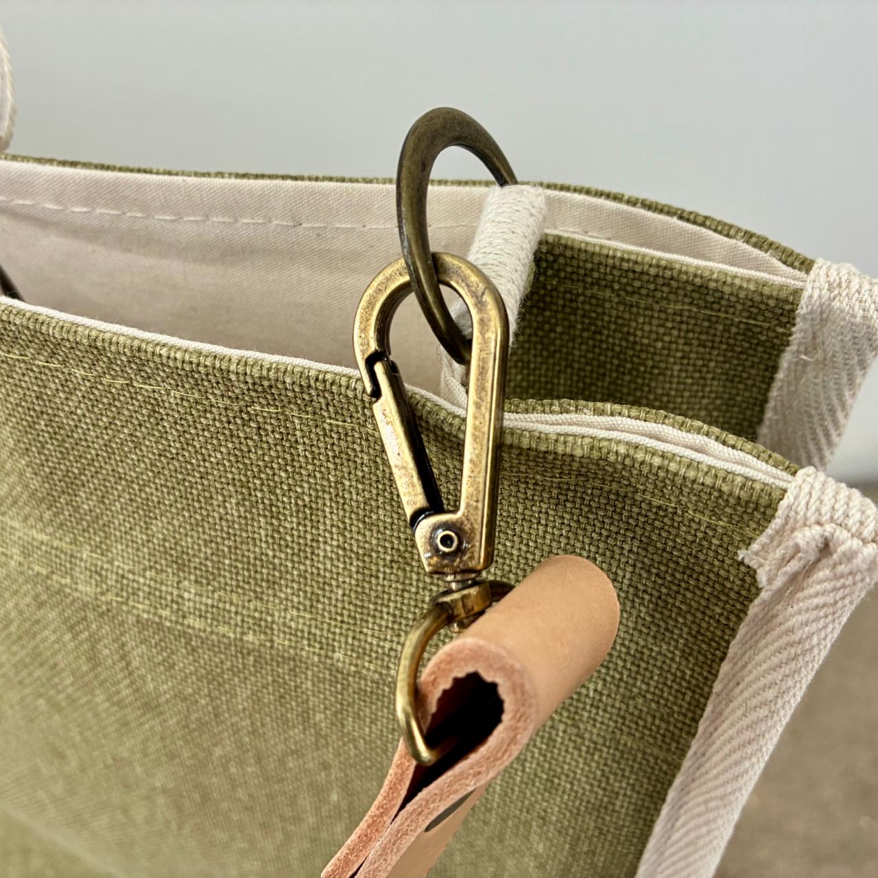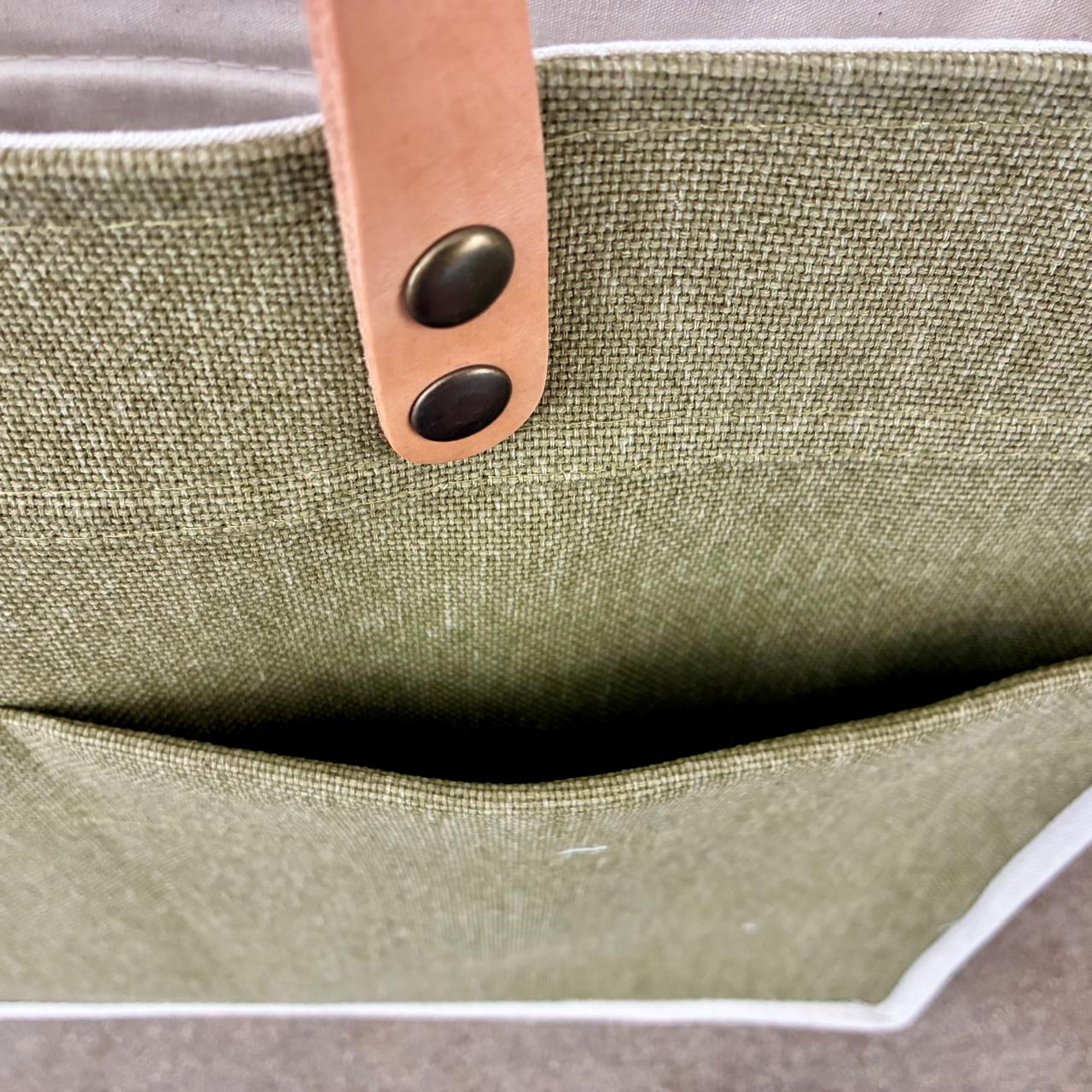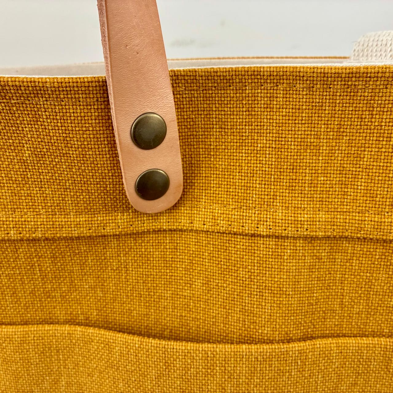 Tote confeccionada en lona natural con forrería en lienzo 100% algodón. Combina materiales nobles y detalles de calidad.